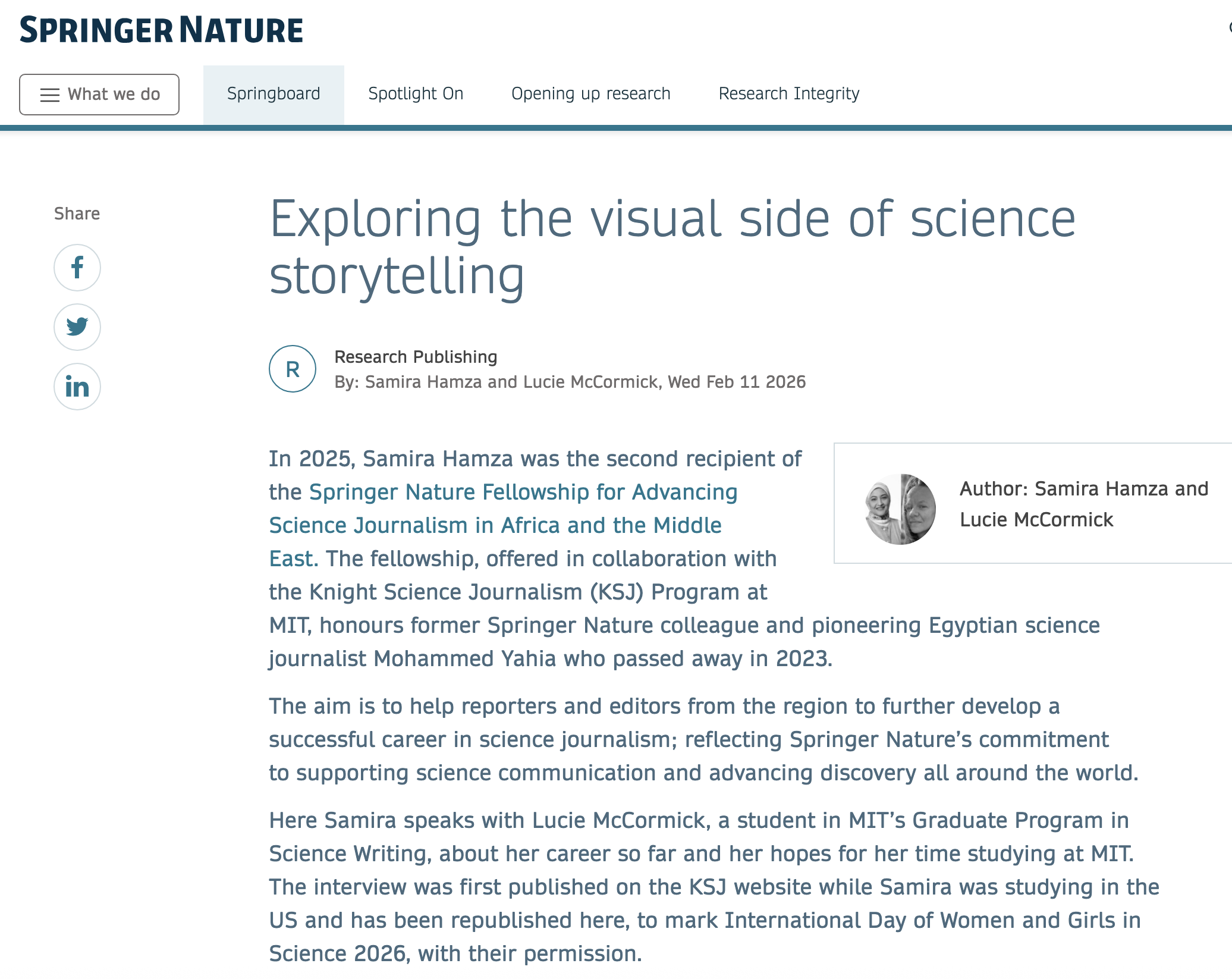 Samira Hamza almost never stops thinking about her audience. The Egyptian journalist began her career as a translator for a media research institute that analyses how global media talk about the Arab world. She later became a translator and then senior editor for the Egyptian edition of National Geographic Magazine, where one of her favourite responsibilities was deciding which stories from the magazine’s English-language edition would resonate with her Egyptian young-adult readers. In that role, she says, she aimed to do more than just translate stories; she wanted to localise the science - to tie it to familiar cultural identifiers and on-the-ground realities - in order to make the issues relevant and accessible to people in her region.